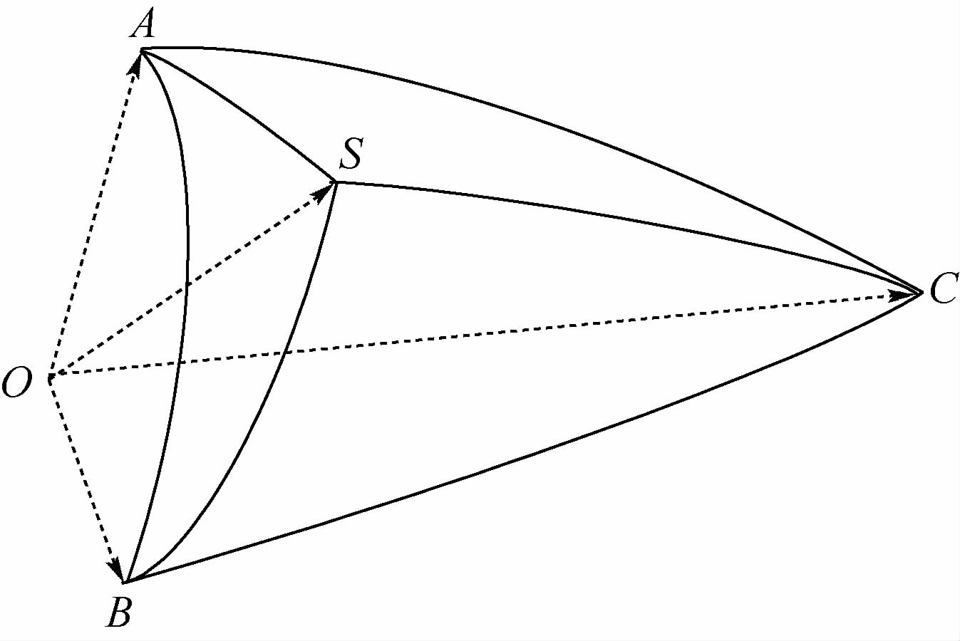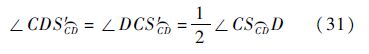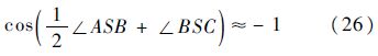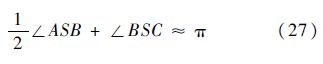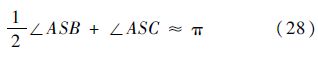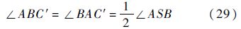 ,其反向延长线与△ASB的球面外接圆帽相交与点C′.根据式(27)与式(28),立即得到∠ASC′=∠BSC′=½∠ASB,从而