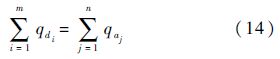 2) 同一起飞机场的航班集飞往同一降落机场.如果存在起飞机场di的航班集飞往nj个降落机场an1,an2,…,anj,流量依次为qn1,qn2,…,qnj,则将di分解为nj个与di地理位置相同的虚拟起飞机场dn1,dn2,…,dnj,令(dn1,an1),(dn2,an2),…,(dnj,anj)的流量依次为qn1,qn2,…,qnj;反之,如果存在mi个起飞机场dm1,dm2,…,dmi的航班飞往同一降落机场am,流量分别为qm1,qm2,…,qmi,则将am分解为mi个与am位置相同的虚拟降落机场am1,am2,…,ami,令(dm1,am1),(dm2,am2),…,(dmi,ami)的流量依次为qm1,qm2,…,qmi.