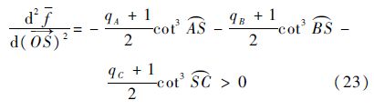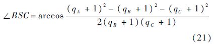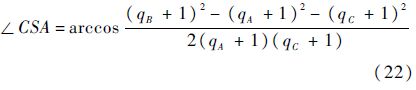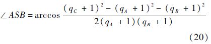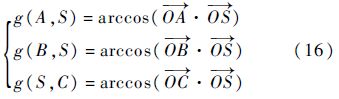 如图 6所示,S为单位球面上不共大圆线的3点A、B、C的Steiner点,其中∠ASB、∠BSC、∠CSA分别称为点A和B、点B和C、点C和A的关联Steiner角.