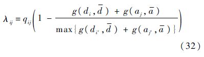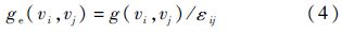 引入当量航程概念:任何两个节点vi、vj之间的当量航程ge(vi,vj)为其几何航程g(vi,vj)与编队飞行相对燃油里程[3]εij的比值,即