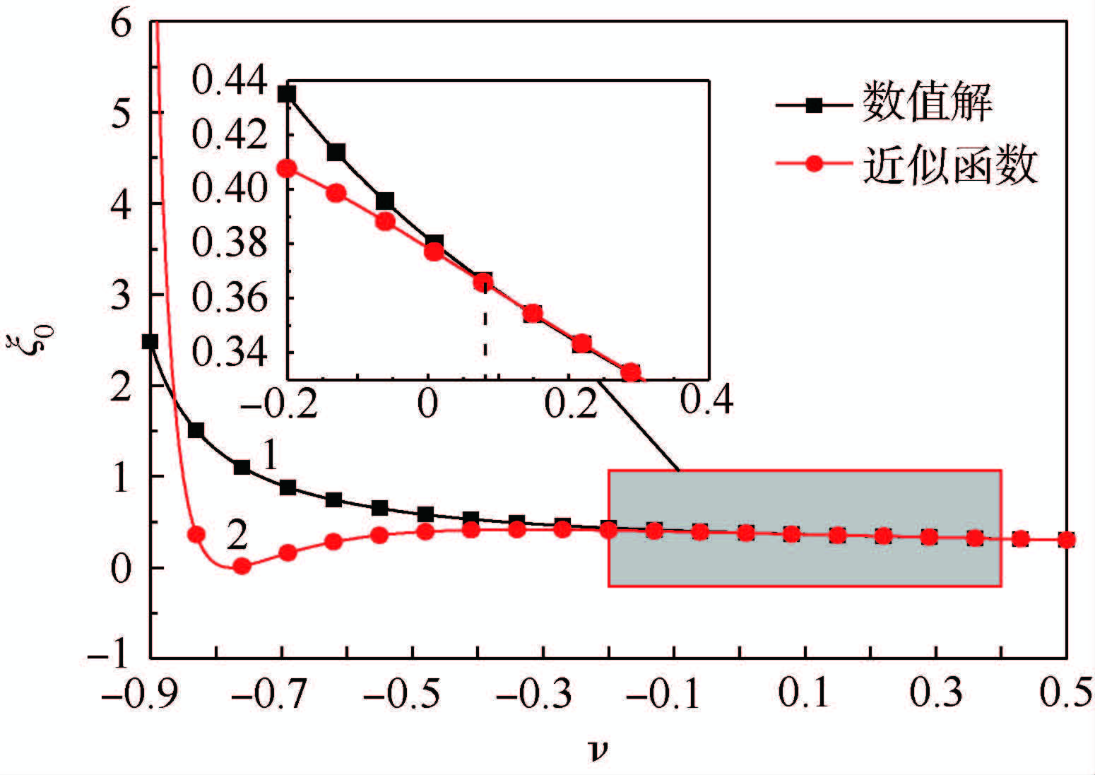 | 图 1 ξ0关于泊松比ν变化 Fig. 1 Variation of ξ0 with respect to ν |
