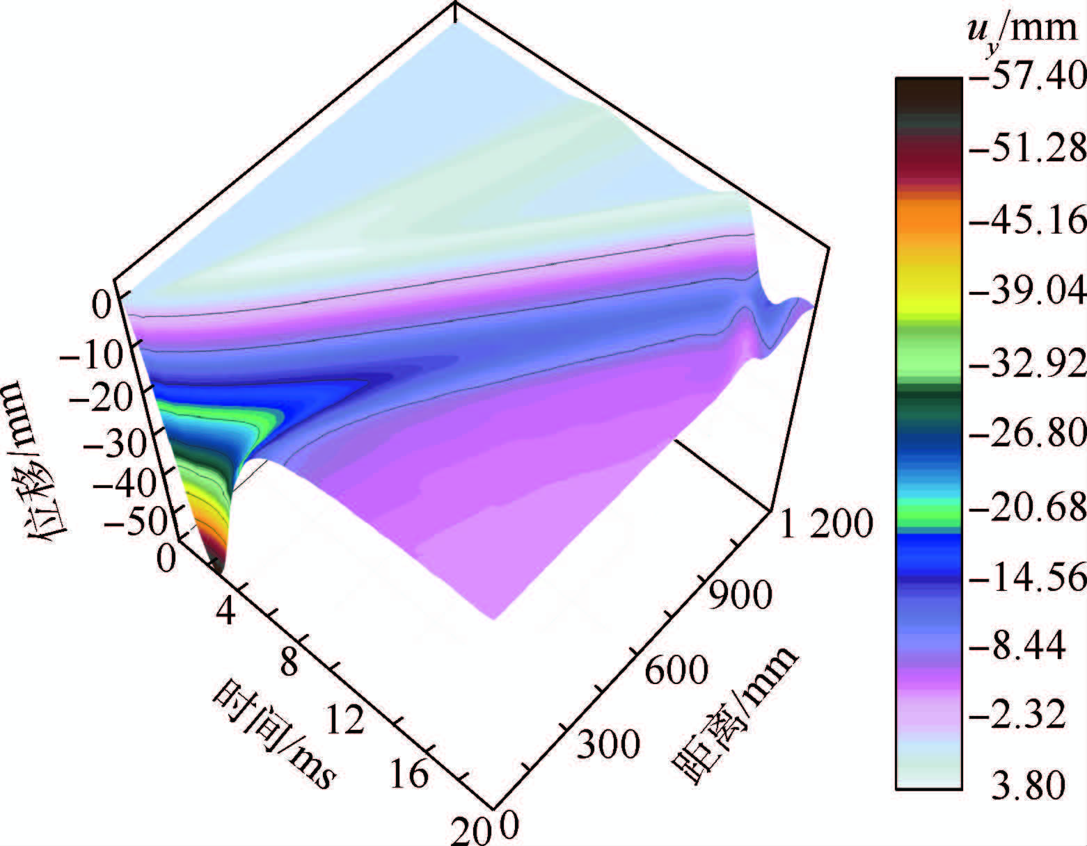 | 图 4 接收点竖直方向位移uy变化3D云图 Fig. 4 3D contour graph of receivers’ uy |