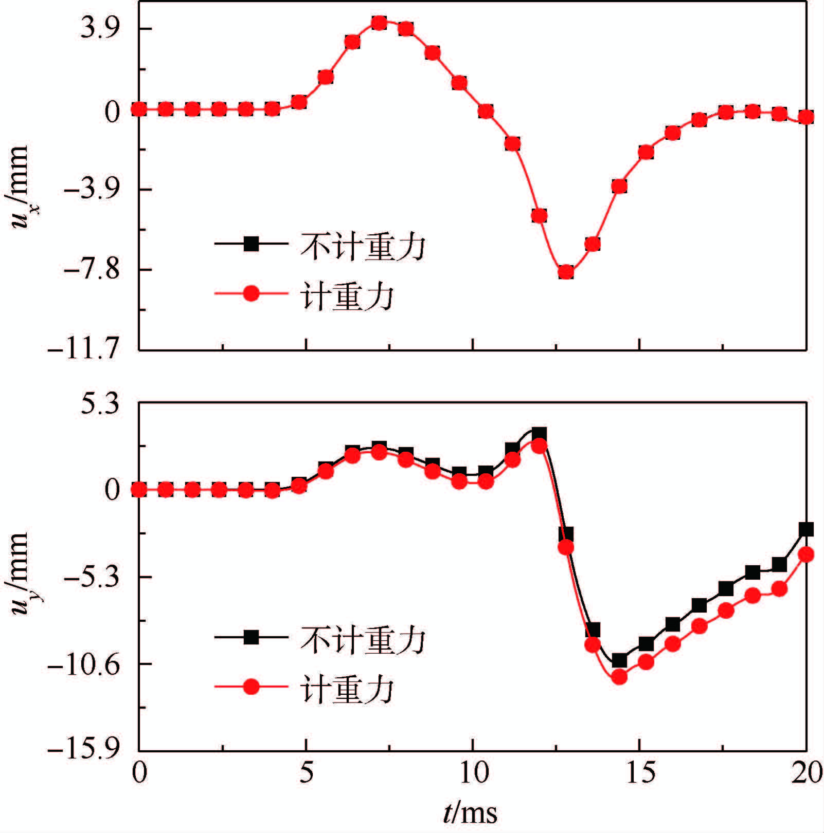 | 图 8 位移随时间变化曲线 Fig. 8 Variation of displacement with respect to time |
