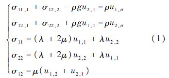 首先,假设初应力在重力的作用下达到静水力平衡.在笛卡儿坐标系下,二维形式的动力学方程[14]可以写为