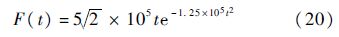 这里沿x方向的距离L1=3 000 mm,y方向的距离L2=3 300 mm.整个计算区域采用不规则网格离散,扩展区域E1和E2网格尺寸均为50 mm×20 mm,E3和E5为50 mm×50 mm,E4为20 mm×50 mm.激励载荷函数通常选为高斯脉冲(Gaussian Pulse,GP)及1阶微分高斯脉冲(Differentiated Gaussian Pules,DGP)[16],这里选择的是DGP函数:
