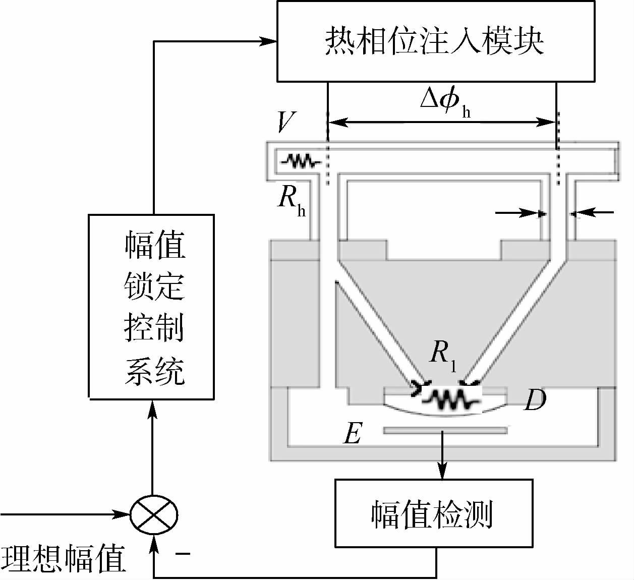 为此,设计如图 3所示的幅值锁定量程扩展方案,通过加热电阻,使得热相位注入模块开始启动。当外界角速度引起相位变化πF时,通过热相位注入ΔΦh来抵消这种相位变化,将陀螺继续维持在某一固定相位处,则对应的薄膜振动幅值也将维持在恒定位置。