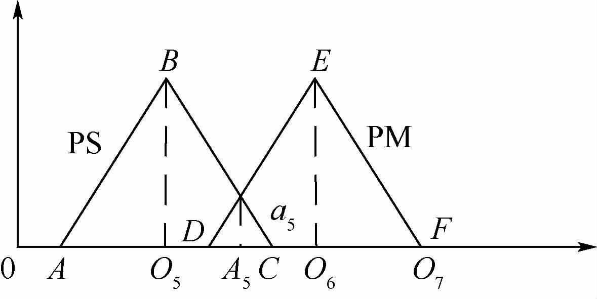 则A5O5=d5(1-a5),其中d5表示PS隶属函数的右半宽度。在△DEO7中,A5O6=dl(1-a5),其中dl表示PS隶属函数的左半宽度。