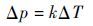 又Δp与管内温度的变化ΔT的关系为