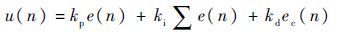式中:kp0、ki0和kd0分别为PID控制器的初始比例、积分、微分参数;kp、 ki和 kd分别为比例、积分、微分参数修正值;kp′、ki′和kd′分别为模糊自适应PID控制器的比例、积分、微分参数。