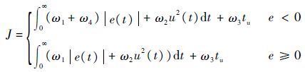 式中:ω1、ω2、ω3和ω4为权值,ω4ω1;e(t)和u(t)分别为误差和控制器输出;tu为上升时间。