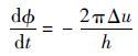 超流体的相位差ΔΦ与超流体的流速v满足