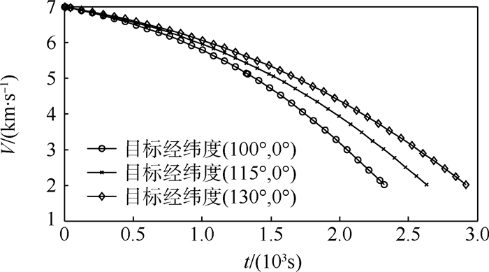 2) 利用解耦的运动方程,首先通过解析积分获得了高度和射程的精确解析解,然后采用正则摄动法获得了较为精确的弹道偏角解析解,并在此基础上利用高斯积分公式获得了经度和纬度的解析解,最后采用单步龙格-库塔积分获得了速度的解。