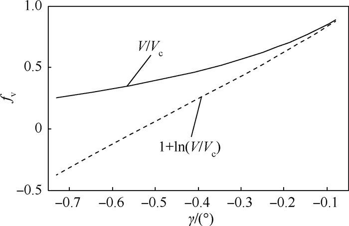 | 图 3 归一化速度fv与弹道倾角γ的关系 Fig. 3 Relationship between normalized velocity fv and flight path angle γ |