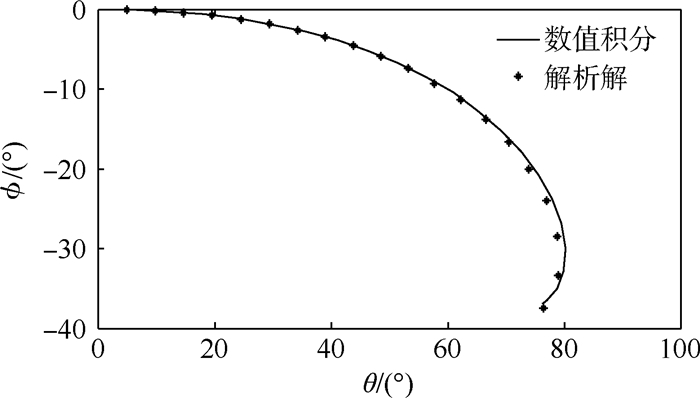 | 图 6 横向弹道解析解与数值解对比 Fig. 6 Comparison between lateral trajectory analytical solution and numerical solution |