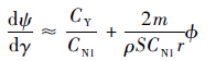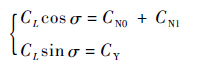 式中:CY为升力系数的横向分量;CN1为升力系数的平稳滑翔纵向分量,上述两者将作为本文平稳滑翔弹道的规划变量;CN0为升力系数的平衡滑翔纵向分量,满足如下关系: