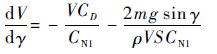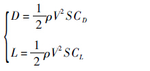 其中:ρ为大气密度;S为气动参考面积;CL为升力系数;CD为阻力系数。