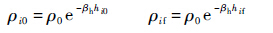 式中:βh为指数大气模型常数;ρi0和ρif分别为滑翔段第i段弹道的初始密度和终端密度,分别如下: