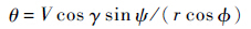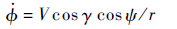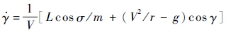 同时,对于平稳滑翔的再入弹道,其弹道倾角也近似于零。进一步假定整个下滑过程中γ单调变化,则式(2)~式(8)给出的运动方程转换为如下形式: