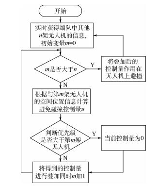 无人机在编队飞行过程中最为重要的就是防止飞机之间的碰撞,针对这个问题,本文根据无人机的空间位置设计了基于碰撞优先级的防撞算法,算法流程图如图 9所示。