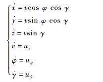 式中:x、y和z分别代表无人机的经度、纬度和高度; v为飞机空速; φ和γ分别为无人机的航迹偏航角和俯仰角;