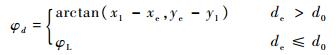 式中:df和de分别为僚机编队中的前向和横向距离。
