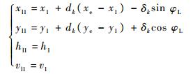 式中:δk为固定的距离;参数dk决定诱导航线位置;he和ve分别为僚机1的期望高度和期望速度;xe和ye为僚机1的期望位置: