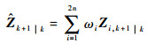 利用一组2n个等权值分布的Cubature点{χi, ωi}对式(1)实现非线性逼近,即