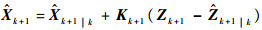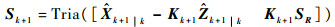 6)根据2.3节(式(30)~式(40))可得多重渐消因子矩阵λk+1,并分别计算引入渐消因子后的PZZ, k+1和PXZ, k+1,即