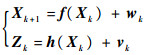 式中:f(·)和h(·)分别为系统的非线性状态转移函数和量测函数;Xk、Xk+1分别为k时刻和k+1时刻系统的n维状态向量;Zk为k时刻系统的m维量测向量;wk为协方差矩阵为Qk的状态噪声;vk为协方差矩阵为Rk的量测噪声。