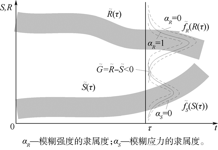 | 图 1 在时间τ内的模糊随机应力-强度干涉模型 Fig. 1 Fuzzy random stress-resistance interference model in time τ |