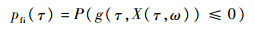 2 模糊时变可靠度求解 2.1 时变可靠度求解方法在时间区间[0,t]内,对∀τ∈[0,t],设产品的极限状态函数为g(τ,X(τ,ω)),产品失效集可通过以下事件来表示: