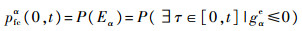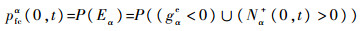 当α水平下的等效极限状态函数中包含随机过程时,由于随机过程的时间相关性,不同时间点的可靠度具有相关性,因此基于上穿方法处理。设Nα+(0,t)表示α水平下的等效极限状态曲面在[0,t]内从安全域向失效域的上穿次数,则[0,t]内的累积失效概率为