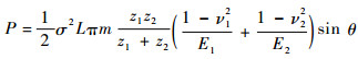 根据Hertz接触理论和轮齿啮合的相关几何条件计算接触面间的法向载荷[18]: