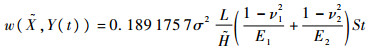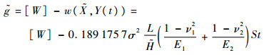 式中:σ为接触应力,通过多次有限元仿真结果,认为它服从均值为106.111 5 MPa、变异系数为0.14的极值I型分布;L为接触线长度;m为模数;z1和z2分别为刚性齿轮和柔性齿轮的齿数;ν1和ν2分别为刚性齿轮和柔性齿轮的泊松比;E1和E2分别为刚性齿轮和柔性齿轮的弹性模量;θ为压力角。