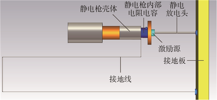 | 图 8 静电放电枪对金属壳体放电示意图 Fig. 8 Schematic diagram of ESD gun discharging on metal closure |