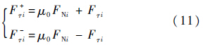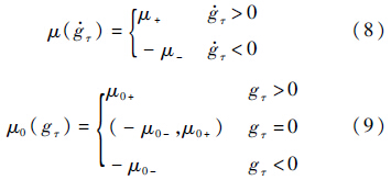 当$\dot g$τi=0时,设对称的Coulomb干摩擦模型的静摩擦因数为μ0,则其正向摩擦余量和负向摩擦余量可定义为[14]