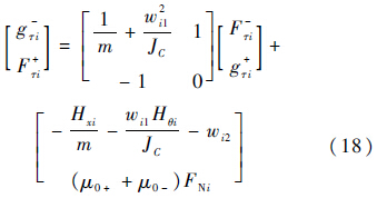 当$\dot g$τi=0时,接触点切向的正向加速度和负向加速度分别定义为[15]