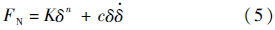 由于Hertz接触力模型中不含阻尼项,这与实际情况有一定的差距.文献[12]给出了一种非线性粘弹性接触力模型,其表达式为