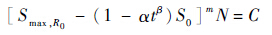 式中:Smax,R0为指定应力比R0下,疲劳寿命为N时材料能承受的最大应力;S0(t)为不同日历腐蚀年限t下的拟合疲劳极限;m和C均为疲劳曲线形状参数。