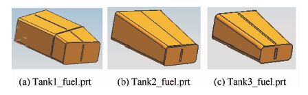 本例中得到的三个独立燃油实体模型及文件见图 2,依次对应图 1中的3个空腔油箱模型。