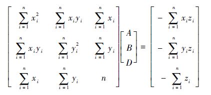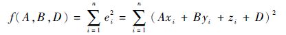 设残差e=Ax+By+z+D,对于n个采样点,要求目标函数为