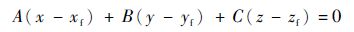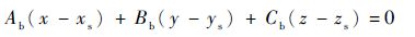 由等效传感器与燃油平面的交点(xs,ys,zs)和燃油平面法方向 X body=(Ab,Bb,Cb)可得燃油平面方程为