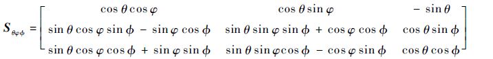式中:θ、φ和Φ分别为俯仰角、偏航角和滚转角。