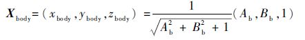 将式(20)和地面坐标系下的z轴 X earth=(0,0,1)代入坐标系转换式(1),得到
